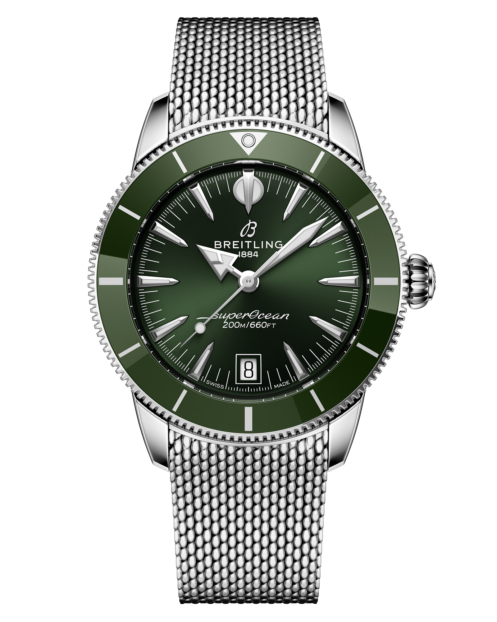 Dial colors include classic black, rich green, and deep blue (again, limited to the two larger sizes). Each features a radiant sunburst finish that pops in the light. A white date window remains at 6 o’clock, which, while practical, may prove controversial due to color mismatch and varying levels of intrusion on the hour marker, depending on case size.