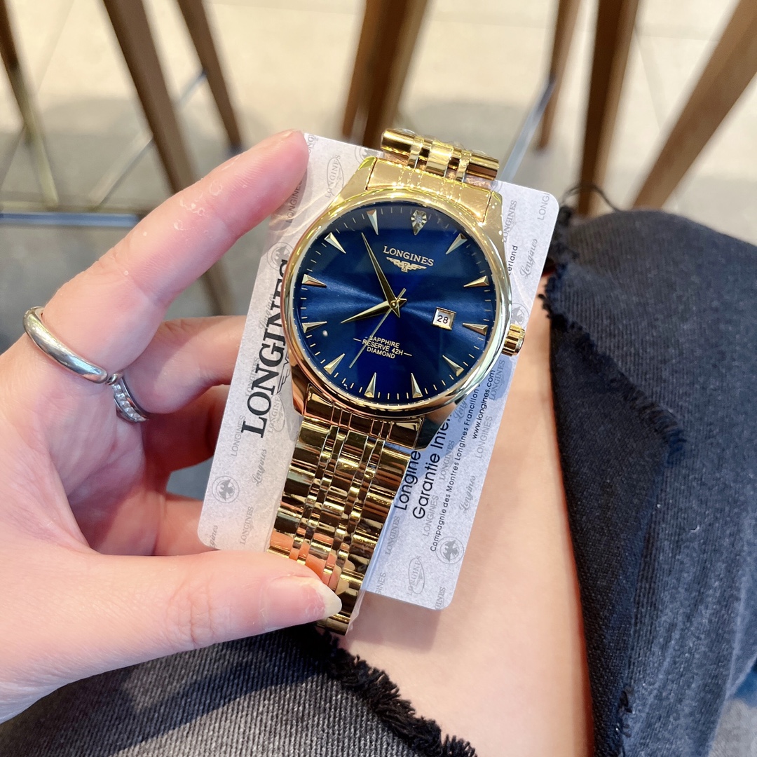 Longines Classic Hot selling Men's Mechanical Time Watch - Deep Blue Dial Gold Strap