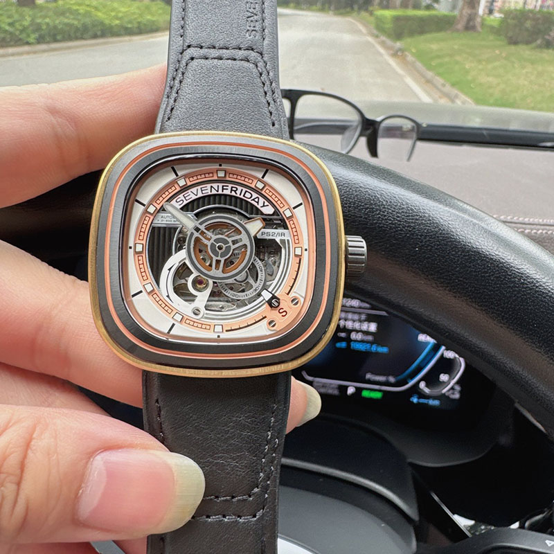 The PS2102 resembles a vintage car, full of charm and style. The combination of copper and brass creates a steady, textured Damascus pattern, exuding an artistic and noble aura. The PS2102 is a gentleman's watch.