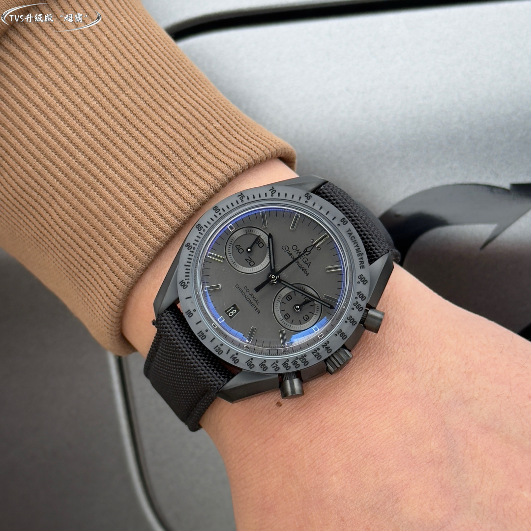 A pioneering work by TVS, the Omega Speedmaster Dark Side of the Moon watch – nylon black strap with black dial