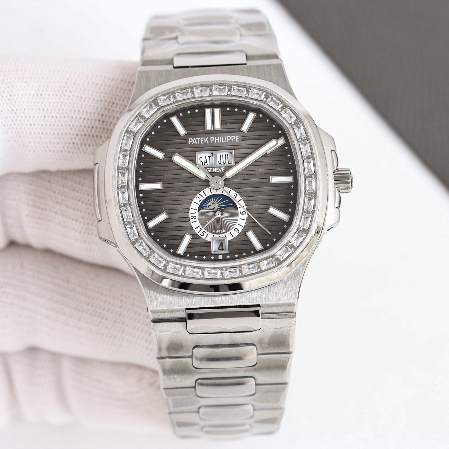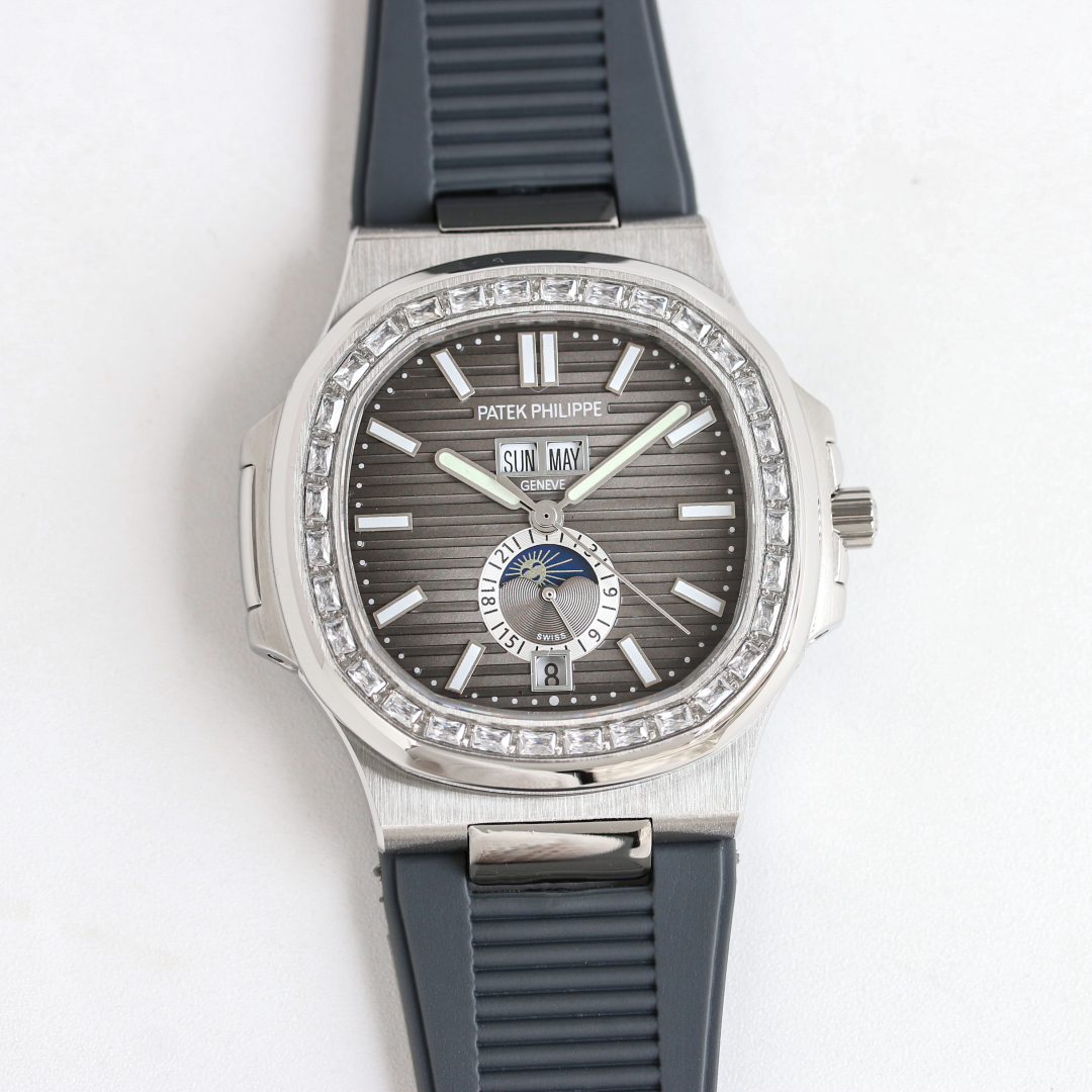 SJ produces high-end replicas. TW releases the new Patek Philippe PPABJ1 Nautilus 5726/1A0 in a silver case with diamonds