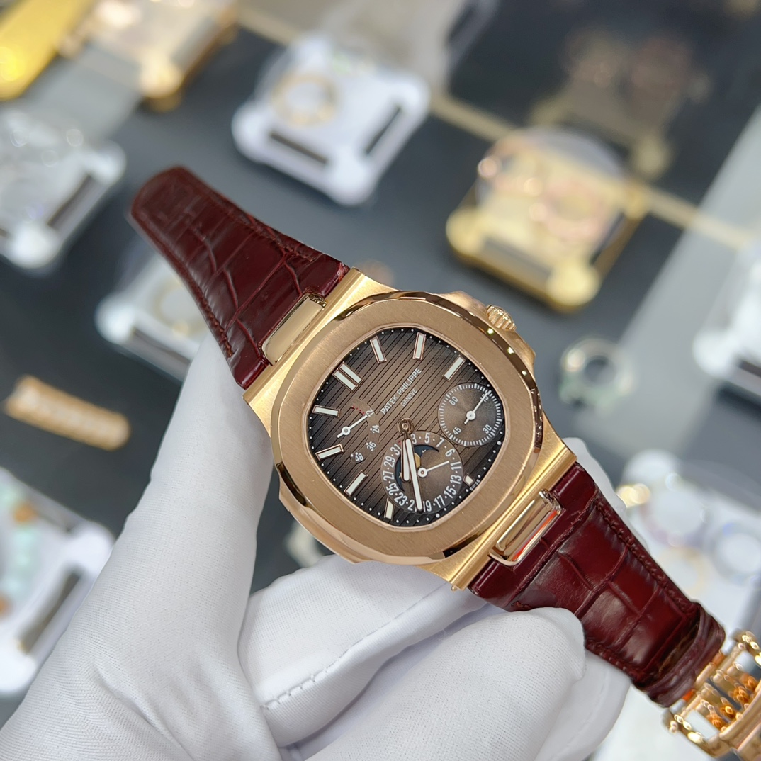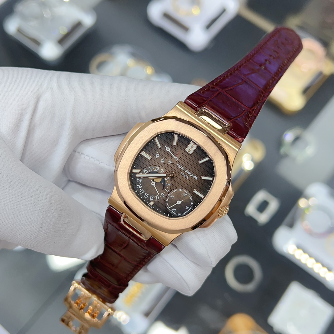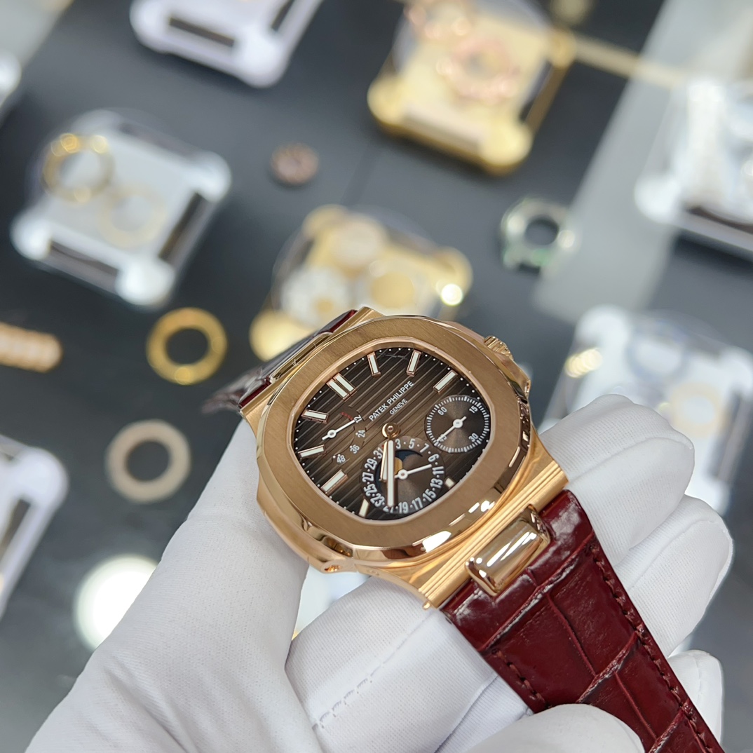 High-end, custom-made, genuine kinetic energy movement. 18k gold-plated, in stock. Craftsmanship: 18k rose gold plating, moon phase modification, dial modification, hands modification, and buckle modification. Brand: Patek Philippe [V3 Version]