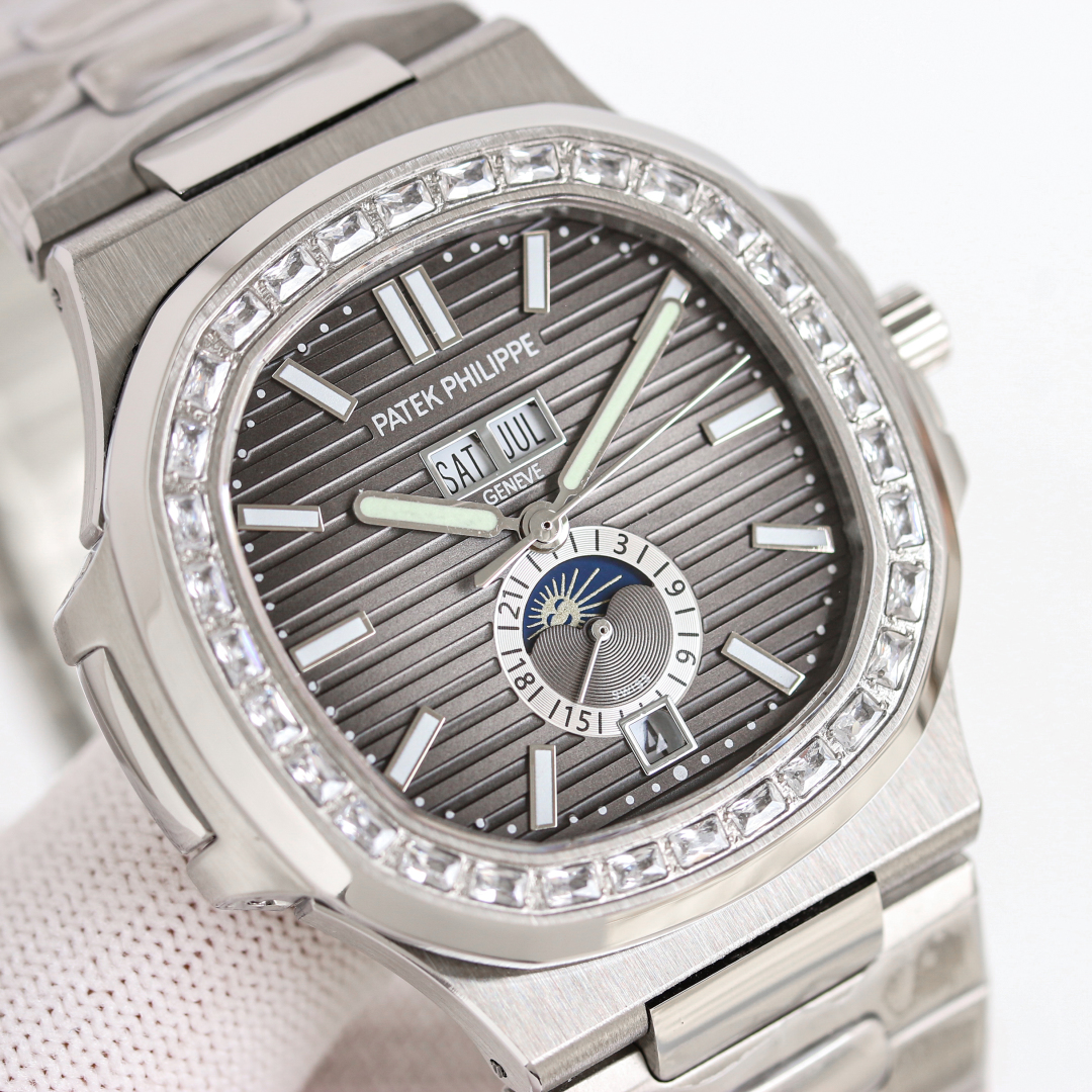 SJ produces high-end replicas. TW releases the new Patek Philippe PPABJ1 Nautilus 5726/1A0 in a silver case with diamonds.