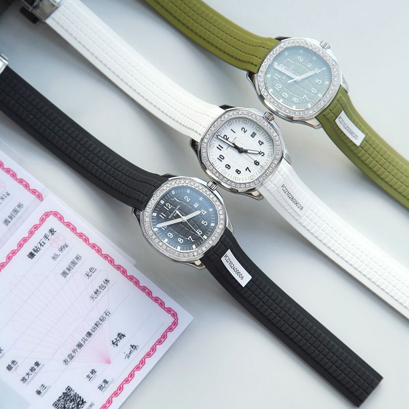 The new Patek Philippe AQUANAUT series is designed specifically for women—a silver case with diamonds