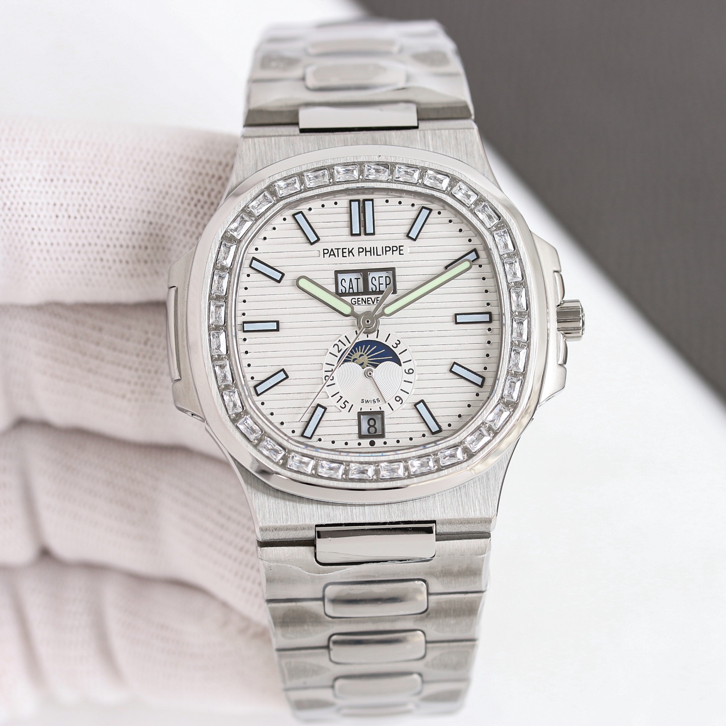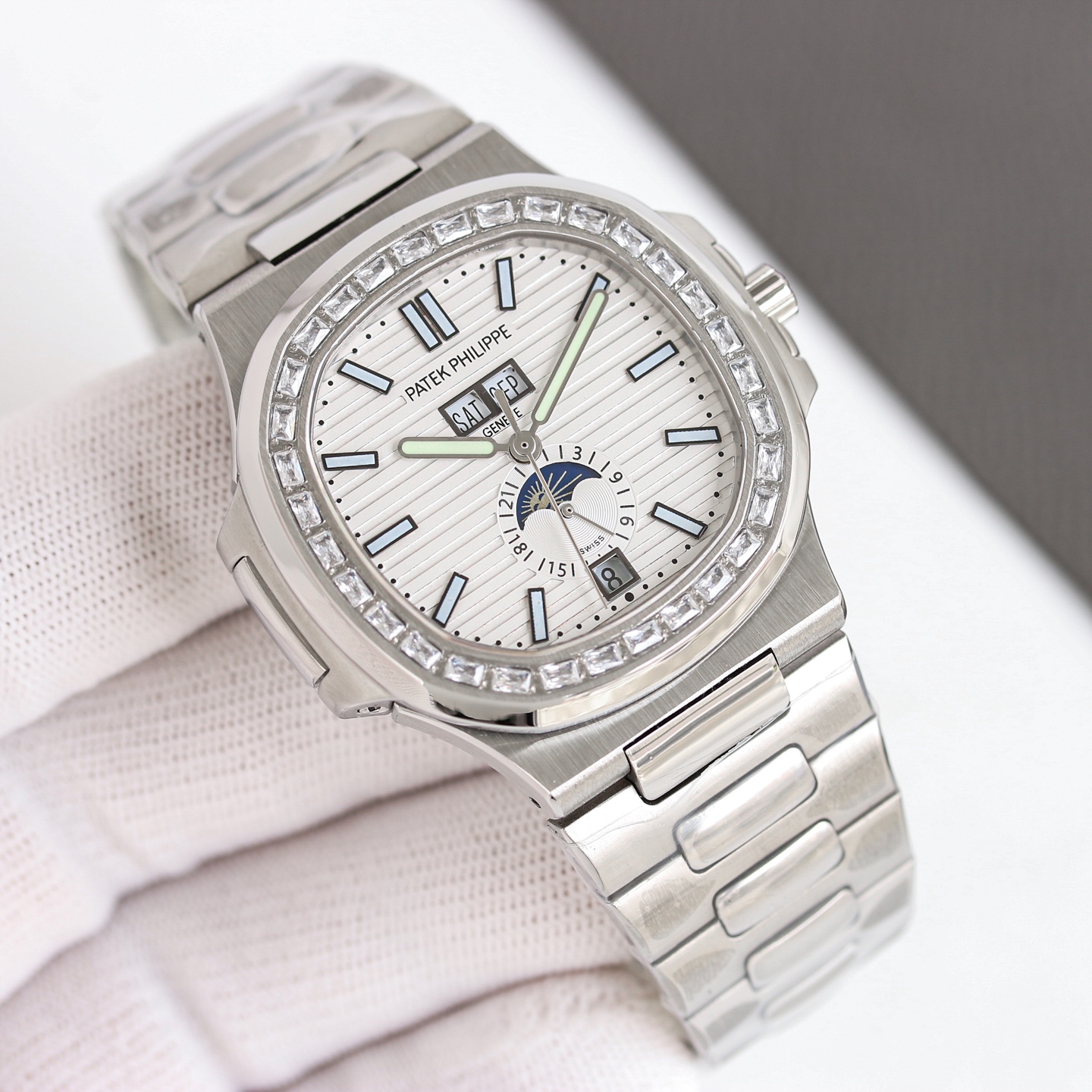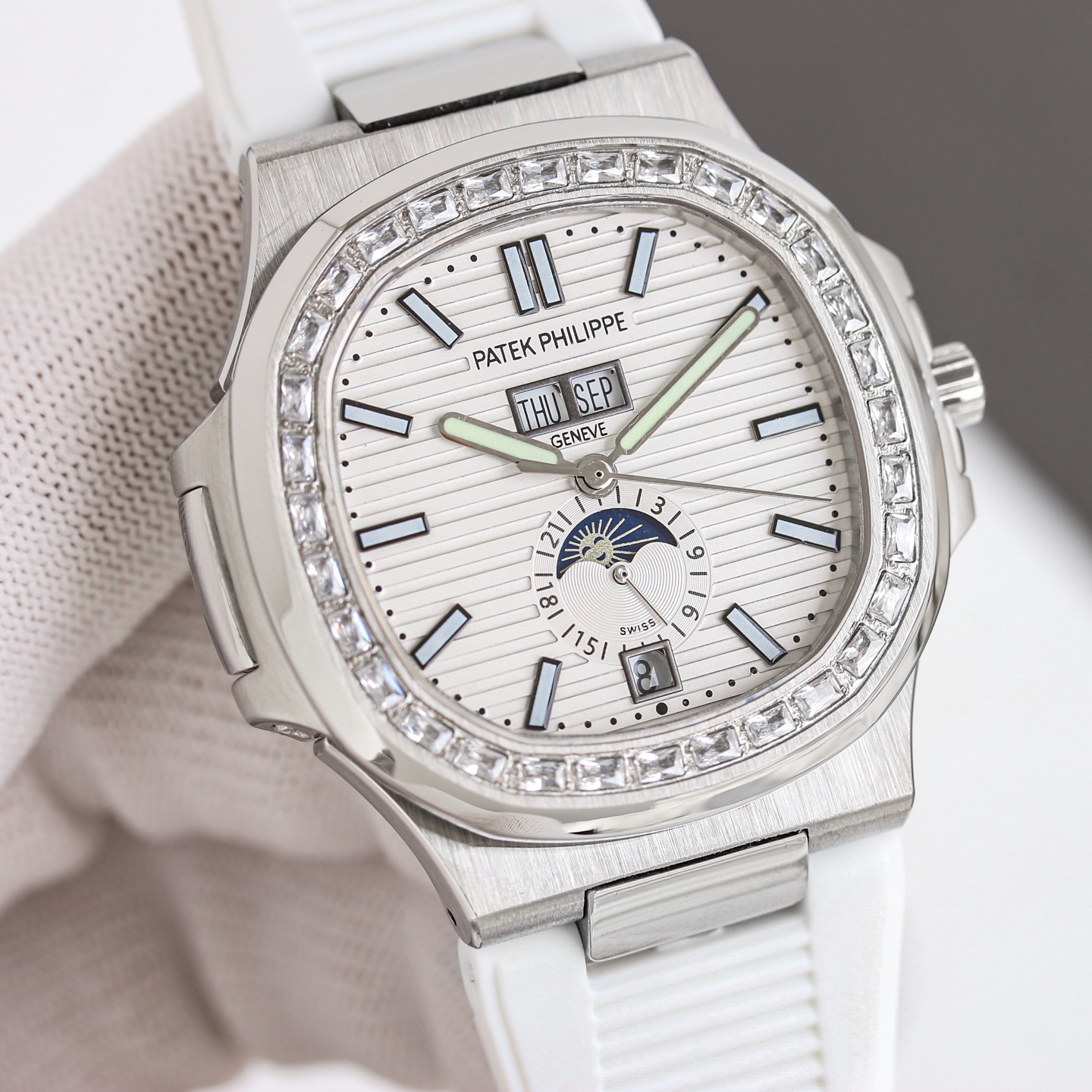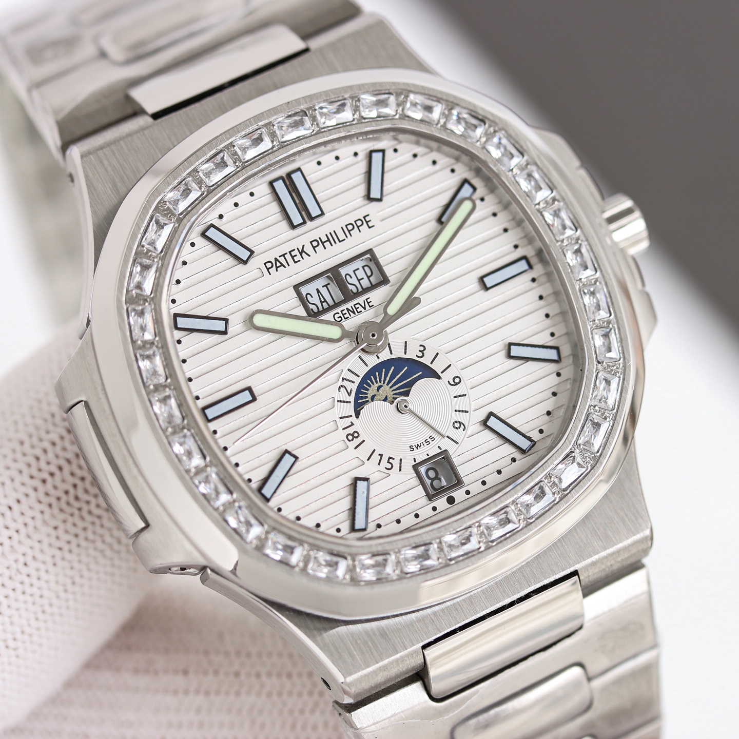 TW's new Patek Philippe Nautilus 5726/1A with diamond-cut case and white dial
