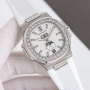 The dial's shading has been corrected, giving it a deeper, more contrasting texture and a stronger three-dimensional effect. The dial features two-tone, infiltrated dials. After six months of research, it has been upgraded to a three-layer dial, addressing the V1's lack of depth in the center white dial and misprinted fonts. The V1's luminous pins have also been misaligned, enhancing the luminous intensity. The authentic six-position moon phase dial is now available. It's white and has been re-molded to match the original color, ensuring it's the same look as the original!