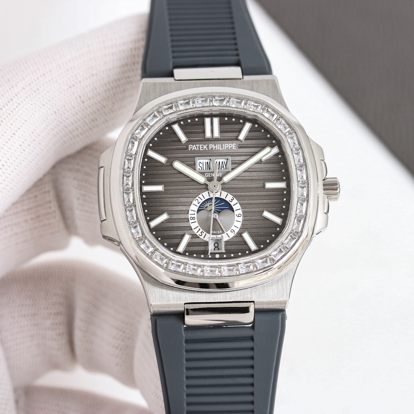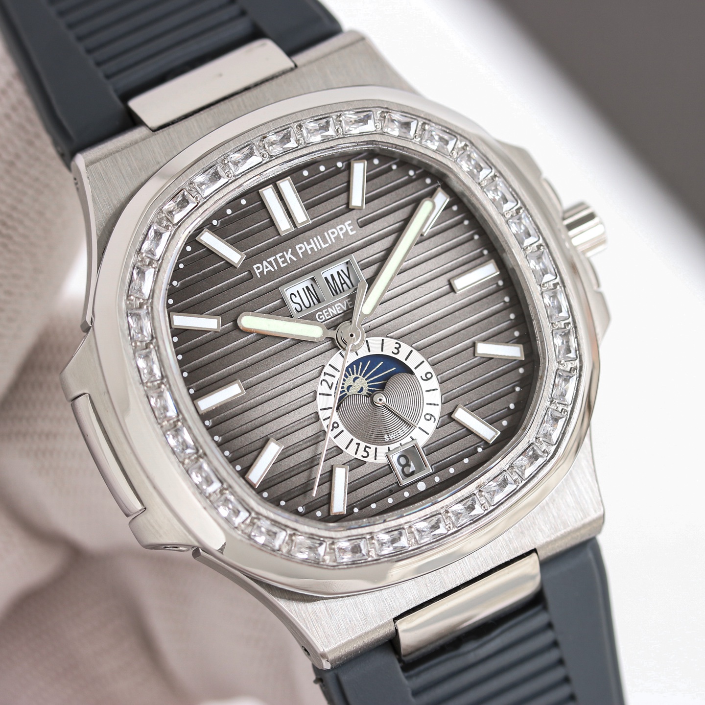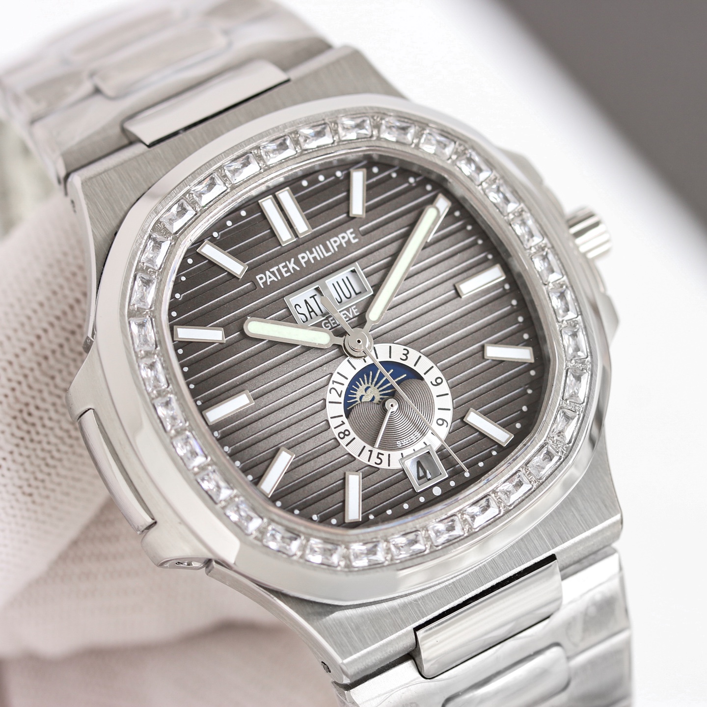 TW's new Patek Philippe Nautilus 5726/1A with diamond-set case and dark gray dial