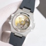The dial's shading has been corrected, giving it a deeper, more contrasting texture and a stronger three-dimensional effect. The dial features two-tone, infiltrated dials. After six months of research, it has been upgraded to a three-layer dial, addressing the V1's lack of depth in the center white dial and misprinted fonts. The V1's luminous pins have also been misaligned, enhancing the luminous intensity. The authentic six-position moon phase dial is now available. It's white and has been re-molded to match the original color, ensuring it's the same look as the original!