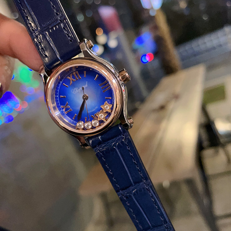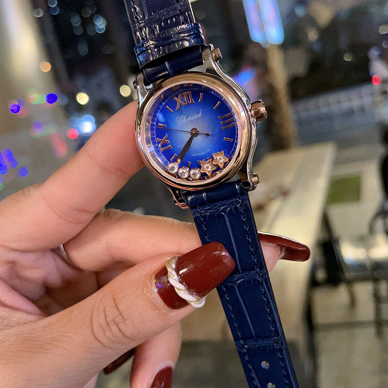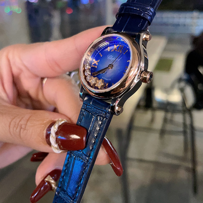A romantic debut, available in limited quantities. The elegant ocean blue gradient mother-of-pearl dial evokes the alluring vastness of the Milky Way, while the two star-shaped diamonds resemble a pair of soulmates. Chopard is a familiar name, and our first impression is of the talented and world-renowned pianist, who brings artistic inspiration and joy. Both Christmas red and ocean blue are the most beautiful winter colors. My heart follows my movements, and I follow my heart! Size 30mm