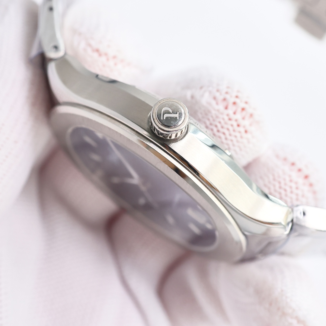 3. Watch dimensions: 42 x 9.3mm for men and 36 x 9.1mm for women. Dimensions and thickness are consistent with the original. 4. The watch's mirror is a double-sided anti-reflective sapphire crystal. The simple three-hand watch with a 6-o'clock calendar creates an elegant and stylish look, perfect for any occasion. This high-end watch, imbued with sunny charm, is paired with a polished and matte-finished stainless steel bracelet, perfectly complementing the sleek round case and cushion-shaped dial.