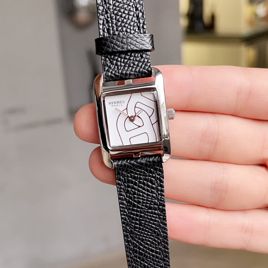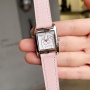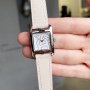 The classic H-shaped case features a white natural porcelain dial, hand-polished. I can't resist a watch with a square dial like this.