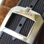 Band Buckle: The natural rubber strap is thin, long, and flexible, comfortably wrapping around the wrist and fitted with a genuine Jaeger-LeCoultre buckle.
