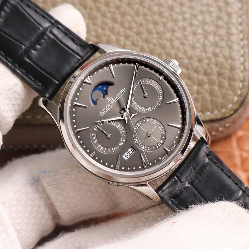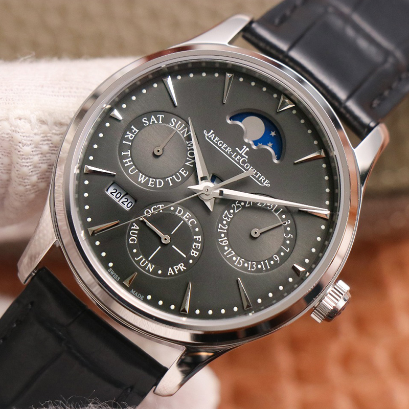 The V9 Jaeger-LeCoultre Master Perpetual Calendar Automatic Mechanical Watch (official models: white dial 130842J, black dial 1308470, gold dial 1302520, gray dial 30354J) is the same watch worn by Stephen Strange in the film "Doctor Strange." The V9 factory has achieved all the functions of the original 868 movement without changing the original 39mm diameter. Functions are as follows: