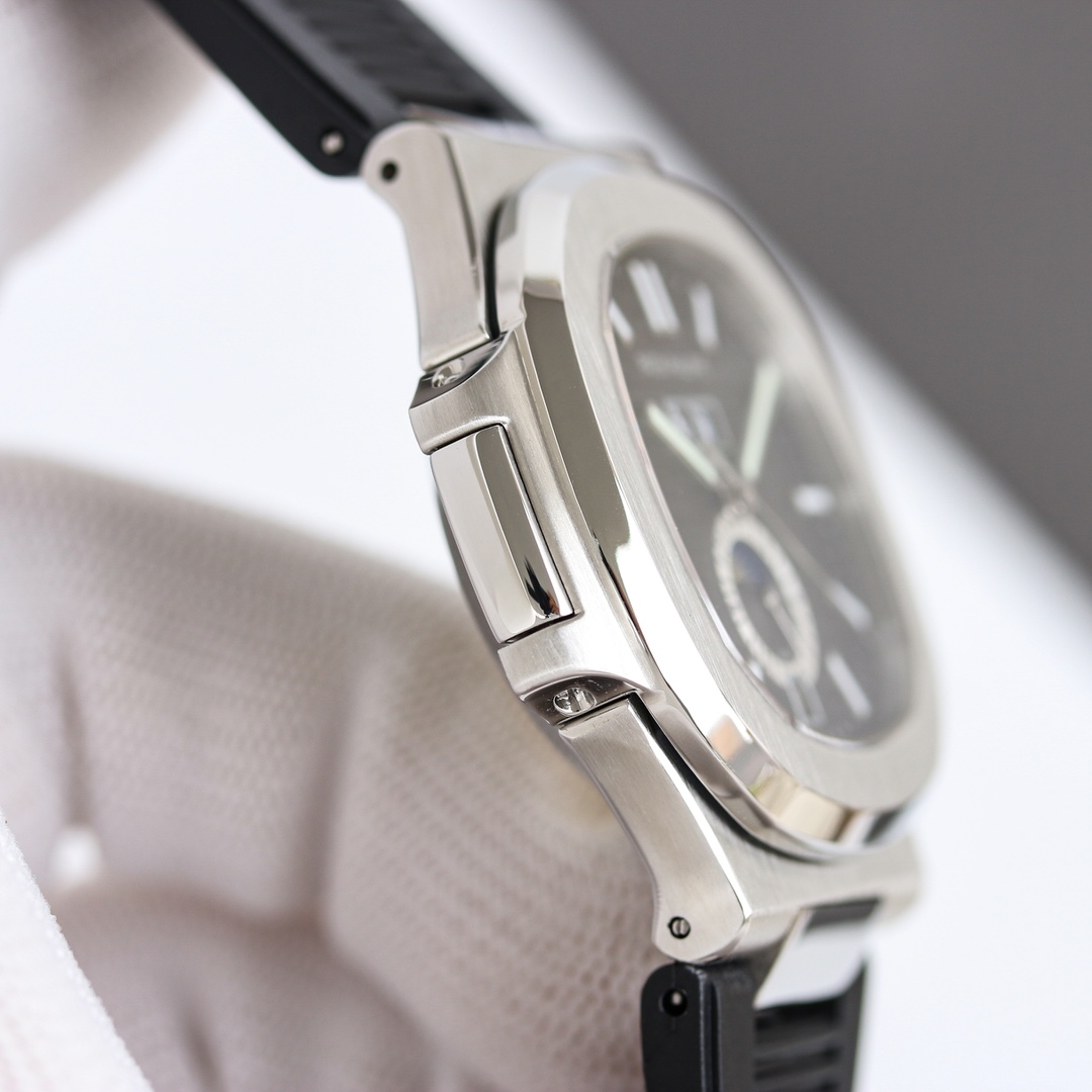 The dial's shading has been corrected, giving it a deeper, more contrasting texture and a stronger three-dimensional effect. The dial features a two-tone, infiltrated dial. After six months of research, it has been upgraded to a three-layer dial, addressing the V1's issues of a lack of depth in the center white dial and misprinted fonts. Furthermore, the misaligned luminous pins on the V1 dial have been corrected, enhancing the luminous intensity. The original six-digit moon phase is white, but we've re-molded it to match the original color, ensuring it's the same as the original!