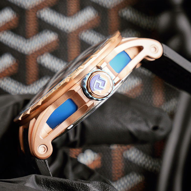 Pirelli rubber strap, a fusion of strength and beauty, vibrant color, and a double flywheel skeletonized dial, embodying the beauty of mechanical movement!