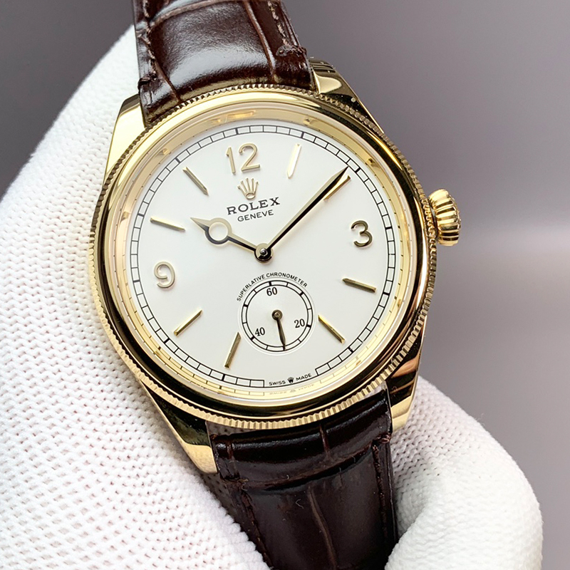 Two-hand and a half business model Rolex - Brown alligator leather strap with white dial