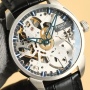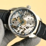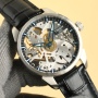 The movement features improved radiant lines, a new deck plating color, and the addition of the 6497 ETA stamp. Customizable imported 6497 shock-absorbing notched models are available, a 100% replica of the original. Through the sapphire crystal, five spoke-like lines radiate from the center of the dial, resembling an exquisite windmill. Every detail of this skeleton watch conveys a unique aesthetic. The elegant blue of the hands and indexes perfectly complements the skeleton movement, making reading clear, convenient, and enjoyable. The watch case is crafted from tough 316L stainless steel with a brushed finish for a striking texture. The case measures 43 mm in diameter and is 12 mm thick. The dial's unique details create a classic yet modern experience. The skeleton dial is a testament to its craftsmanship and a truly exceptional visual experience.