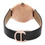 Bracelet: Black leather strap with an 18k rose gold deployant clasp.