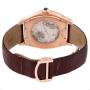 Bracelet: Brown leather strap with 18k rose gold deployant clasp.