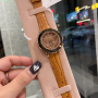 The rose gold-tone all-steel case complements the cut Swarovski crystal bezel. Imported cowhide leather.